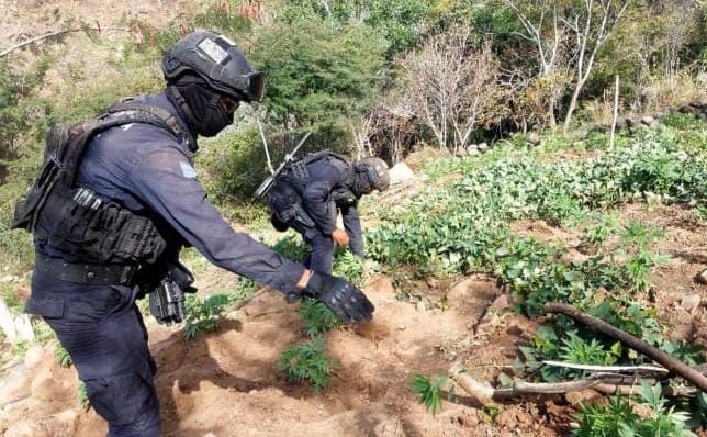 Guardia Civil, Sedena y GN localizan y destruyen 3 plantíos de marihuana, en Churumuco